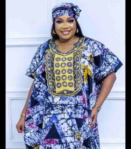 Original price was: US$75.00.US$40.00Current price is: US$40.00.Ewa Collection: Twilight Tango Boubou Kaftan – Handcrafted Embroidery and Shimmering Stones