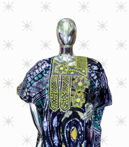 Original price was: US$110.00.US$60.00Current price is: US$60.00.Ezinne Collection: Boubou Kaftan adorned with a stylishly embroidered neckline