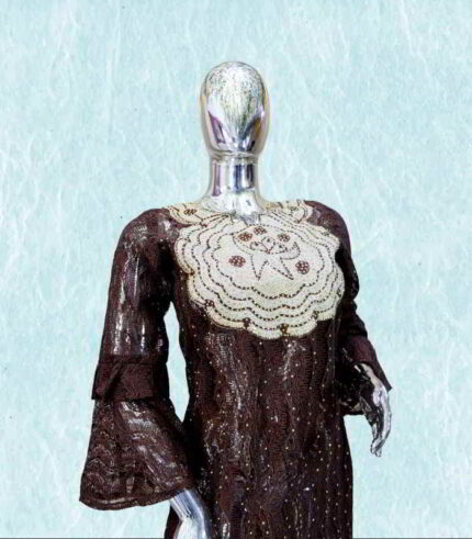 Original price was: US$75.00.US$40.00Current price is: US$40.00.Ezinne Boubou Kaftan: Lace Embellished with a Stylishly Embroidered Neckline