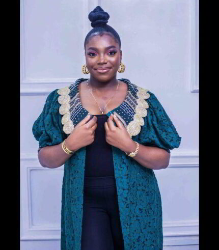 Original price was: US$70.00.US$30.00Current price is: US$30.00.Ini Collection: Kimono with Elegance Of Aso Oke Fabric and Exquisite Embroidery