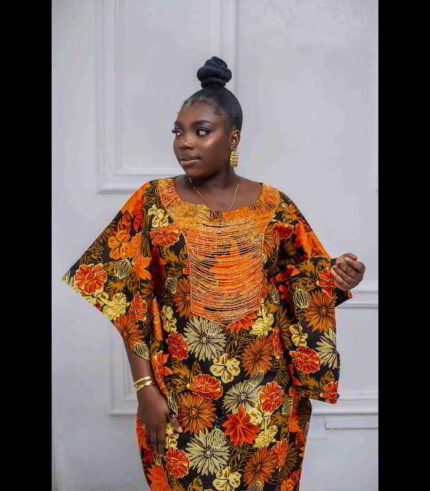 Original price was: US$90.00.US$40.00Current price is: US$40.00.Lola Collection – Opulent Beaded Ankara Boubous Kaftan Ensemble with Intricate Embellishments and Elegant Details
