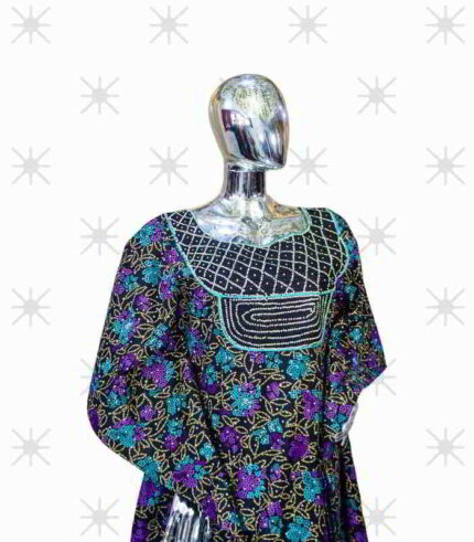 Original price was: US$85.00.US$60.00Current price is: US$60.00.Mofe CollectionAnkara Boubou Kaftan: Embroidered Luxe with Exquisite Crystal Detailing