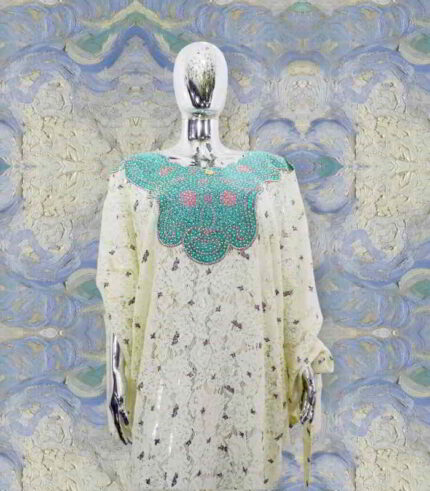 Original price was: US$90.00.US$40.00Current price is: US$40.00.Kiki Collection Abaya Boubou Kaftan: Embroidered Luxury with Beaded and Stone Accents