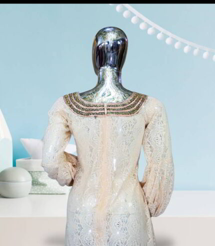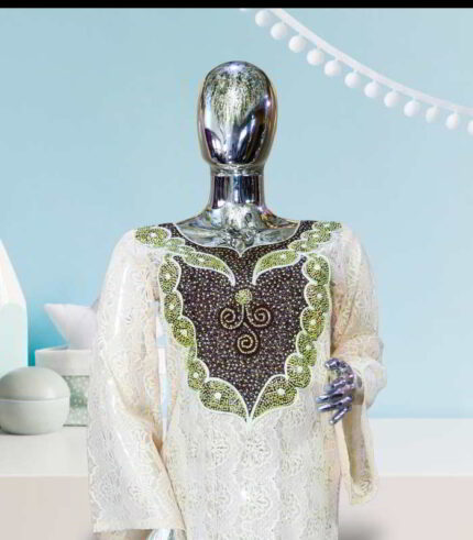 Original price was: US$110.00.US$50.00Current price is: US$50.00.Moronke Collection: Radiant Reverie Kaftan – Embroidered Splendor with Gleaming Stones