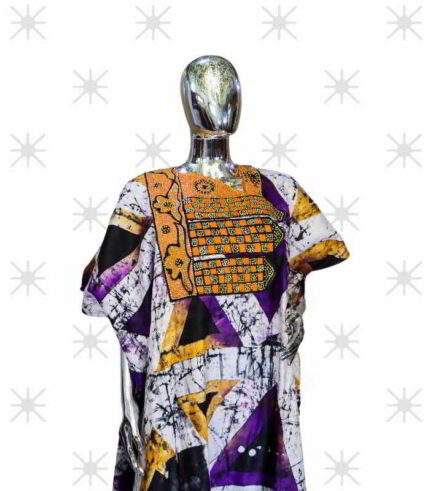 Original price was: US$75.00.US$45.00Current price is: US$45.00.Nifemi Collection: Radiant Reverie Boubou Kaftan – Embroidered Beauty Adorned with Shiny Stones