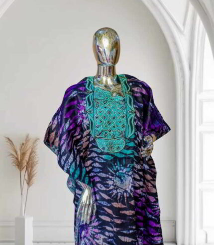 Original price was: US$70.00.US$50.00Current price is: US$50.00.Ayanfemi Collection: Enchanted Aura Boubou Kaftan – Embellished Embroidery with Sparkling Stones