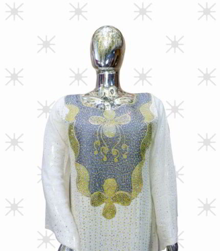 Original price was: US$105.00.US$60.00Current price is: US$60.00.Wura Collection Boubou Kaftan: Embroidered Chic with Shimmering Stone Detailing