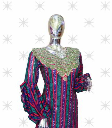 Original price was: US$100.00.US$60.00Current price is: US$60.00.Tomi Collection Boubou Kaftan: Embroidered Radiance with Shining Stone Accents