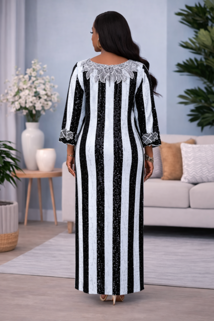 Original price was: US$100.00.US$60.00Current price is: US$60.00.Tomi Collection Boubou Kaftan: Embroidered Luxe with Exquisite Crystal Detailing