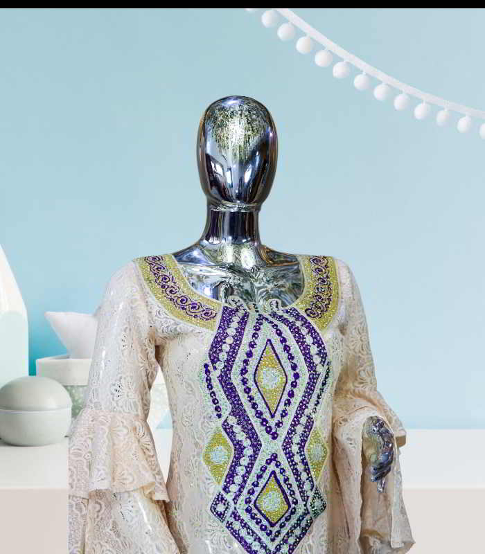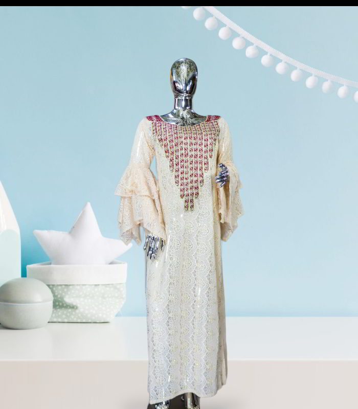 Nimi Collection: Ivory Illumination Kaftan – Embroidered Splendor with Shiny Stone