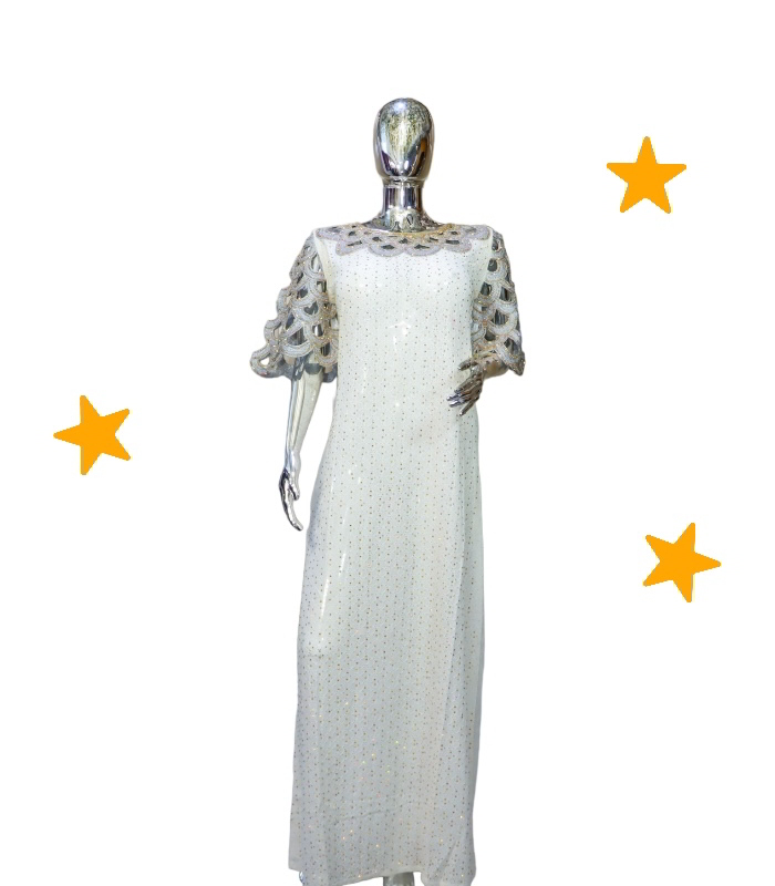 Ibukun Collection: Pearl Paradise Boubou Kaftan Intricate Embroidery and Dazzling Stonework