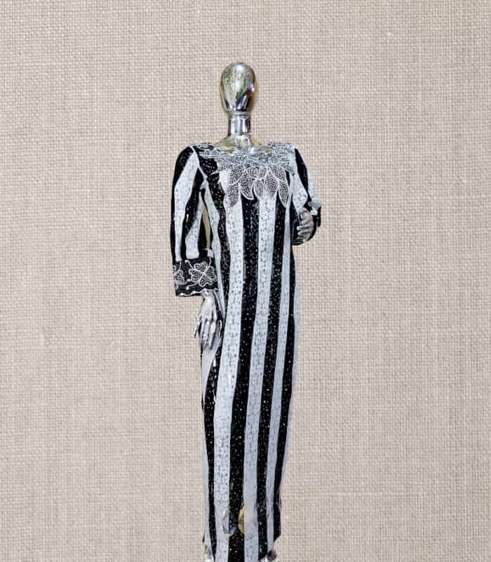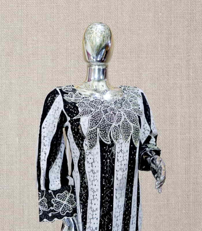 Elevate your style with the TUTU Collection - a stunning selection of black and white lace-adorned boubous and kaftans, embellished with intricate embroidery and dazzling stone accents. Designed for the discerning individual, these unlined garments require delicate care and should not be machine washed.