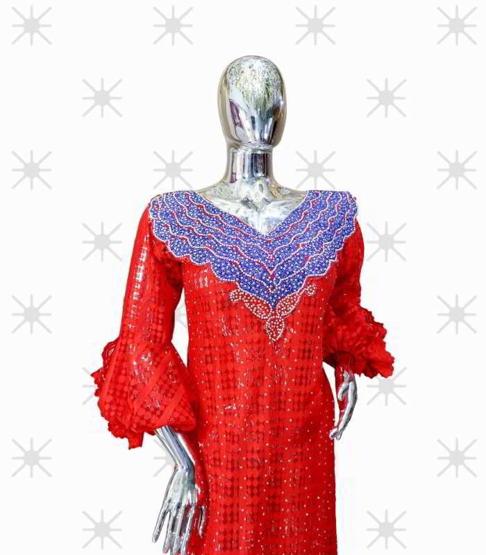 Wura Collection Boubou Kaftan: Embroidered Chic with Shimmering Stone Detailing