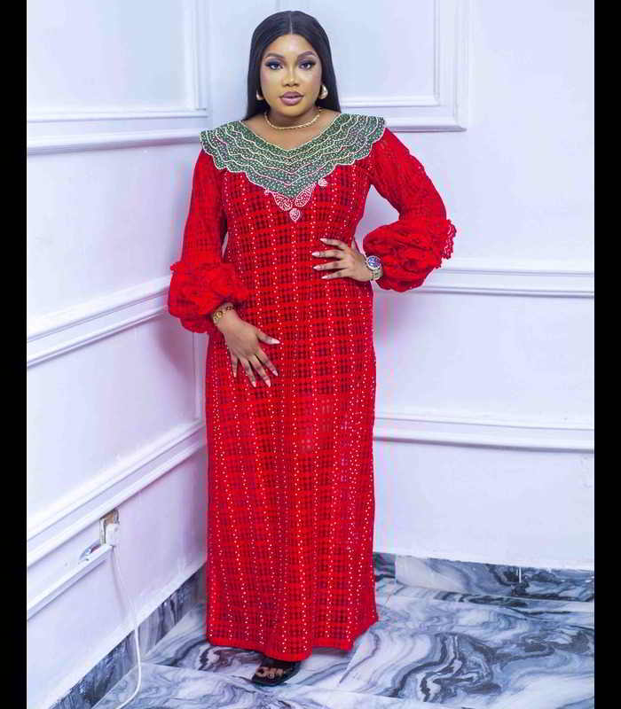 Ezinne Collection: Boubou Kaftan with an Off-shoulder Neckline