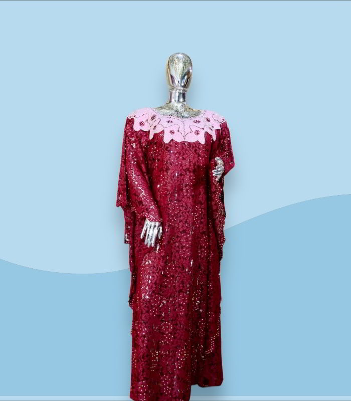Eri Collection: Crimson Crown Boubou Kaftan – Embroidered Splendor with Glistening Stones