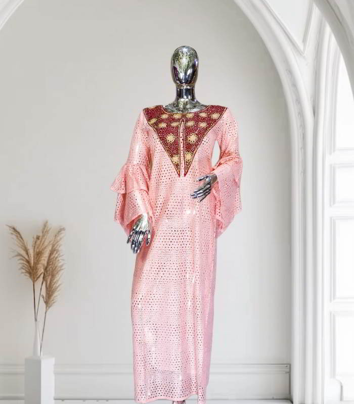 Eri Collection: Sunset Sparkle Boubou Kaftan – Intricate Embroidery and Dazzling Stonework