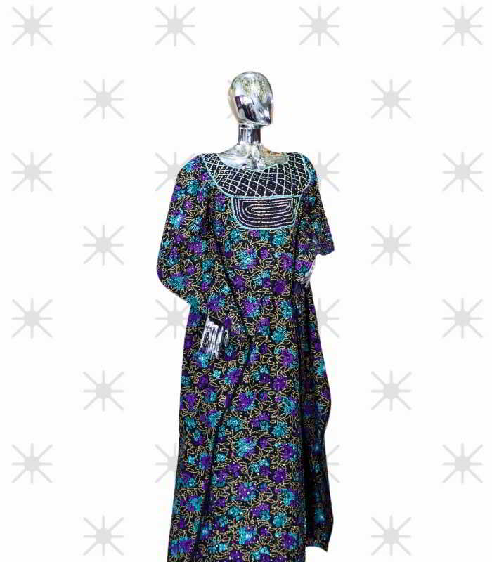 Elevate your style with the exquisite MOFE Collection, a stunning line of Ankara boubous and kaftans lavishly garnished with intricate embroidery and meticulously stoned details. Designed for the discerning fashionista, each piece in this collection is a masterpiece of craftsmanship and elegance. Please note, these luxurious garments should not be washed in a washing machine to preserve their beauty and quality.