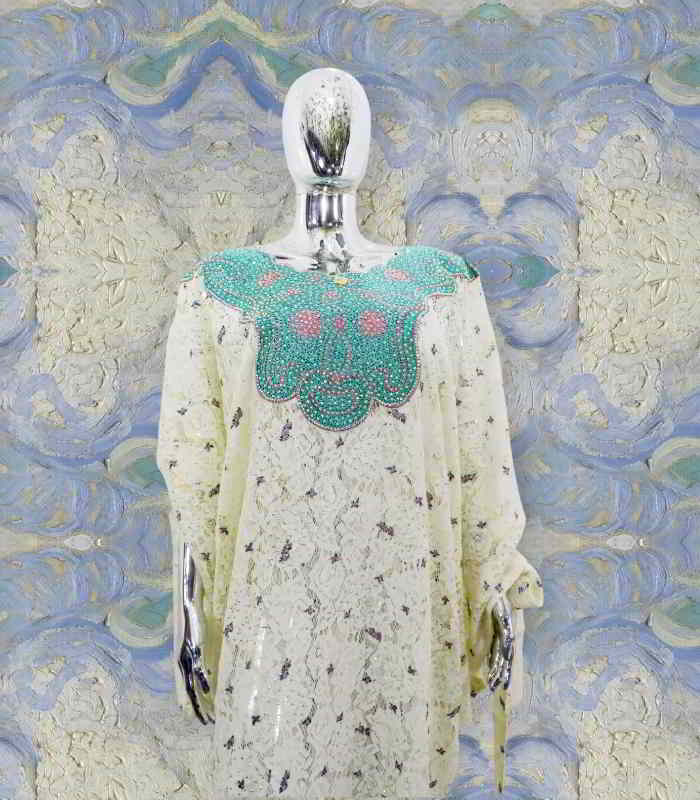 Moronke Collection: Radiant Reverie Kaftan - Embroidered Splendor with Gleaming Stones