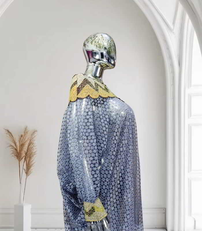 Explore the luxurious HODAN Collection, featuring quality lace fabric and exquisite embroidery details. Each piece, including the off-shoulder boubou kaftan, is adorned with stones for a touch of sophistication. Unlined and designed for the discerning individual, these garments require delicate care and should not be washed in a machine.