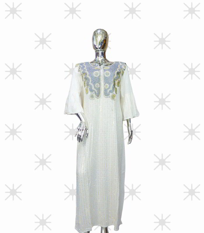 Embrace the cultural richness of Africa while embracing contemporary fashion trends with the Nkem collection. These beaded abaya boubous are more than just garments; they are unique pieces that mirror your individuality and style, destined to become treasured additions to your wardrobe.