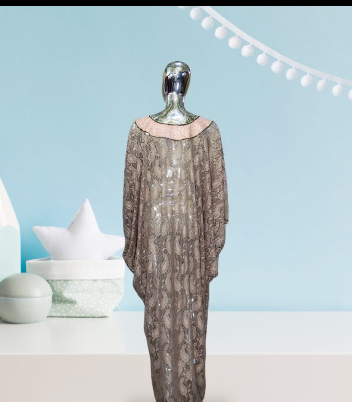 The unlined design of the abaya kaftan enhances its ethereal beauty, allowing it to drape gracefully and move fluidly with every step you take. This piece is designed to make you feel like a queen, exuding confidence and sophistication wherever you go.