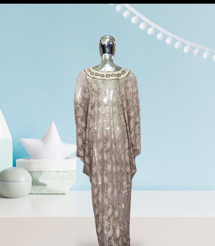 The unlined design of the abaya kaftan enhances its ethereal beauty, allowing it to drape gracefully and move fluidly with every step you take. This piece is designed to make you feel like a queen, exuding confidence and sophistication wherever you go.