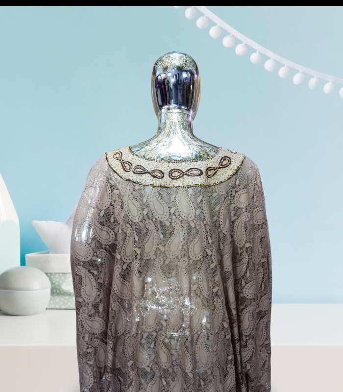 Welcome to the world of luxury and refinement with the OLA Collection, where every garment is a masterpiece of design and craftsmanship. Our garnished with embroidery lace abaya kaftan is a symbol of timeless elegance and modern glamour, perfect for the woman who seeks to make a statement with her style.