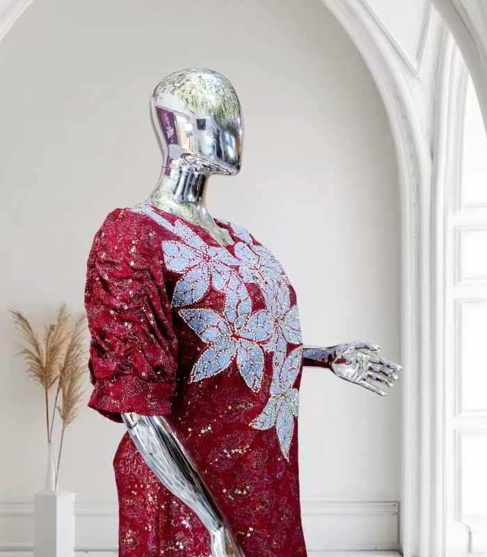 Step into a world of sophistication and luxury with the ADAEZE Collection. Each piece in this exquisite collection is a work of art, meticulously crafted to redefine high-end fashion. Adorned with delicate embroidery patches and shimmering stones, these boubous lace kaftans are a true reflection of refined style and opulence.