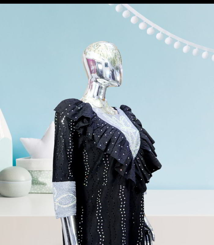 To ensure the longevity of these exquisite kaftans, we recommend delicate care. Avoid machine washing and opt for gentle hand washing or dry cleaning to preserve the beauty of the embroidery and stonework. Treat yourself to the luxury of the IFE Collection and elevate your look with a touch of elegance and sophistication.