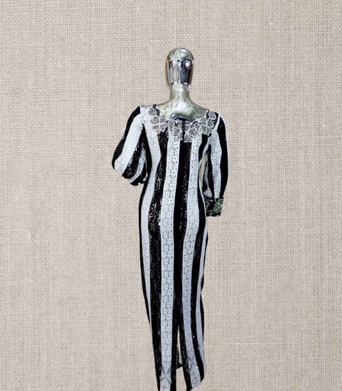 Elevate your style with the TUTU Collection – a stunning selection of black and white lace-adorned boubous and kaftans, embellished with intricate embroidery and dazzling stone accents. Designed for the discerning individual, these unlined garments require delicate care and should not be machine washed.