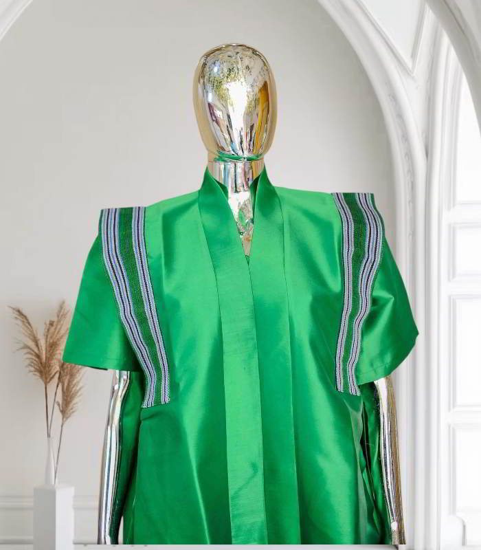 Experience the luxury of the GBEMI Collection and indulge in the beauty of our Mikado Boubous Kaftans, where every stitch tells a story of elegance and refinement. Elevate your wardrobe with our exclusive pieces and make a lasting impression wherever you go.
